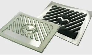 エンボス加工を行う際の凹型、凸型の「版」(2枚1組)になります。
